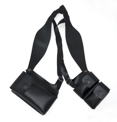 This High-Tech shoulder holster-styled cell phone and smartphone accessory doubles as a fashion wallet and comes with a securely fastened removable billfold. Featuring two pockets on the right and one larger pocket on the left, this smartphone fashion shoulder holster is the latest fashion trend and makes an ideal gift for the style conscious male. > One size fits most all - Comfortable, unobtrusive, elastic back-brace and slings expand to accommodate sizes to XL > Adjustable wallet straps for comfort-tuning fit > Packing Light - Two (2) secure-snap, easy-slide, lined wallets, 2 1/4" w x 4 1/4" h x 1"d (accommodates up to 2 ¾"w x 4 7/8" h x ½" d) > Packing Heavy - One (1) large quick-snap, easy-slide lined wallet, Black - 4 1/4" w x 7 1/2"h x 1"d, Brown - 4 1/4" w x 6 1/2"h x 1"d, > Flat-style Billfold for credit and ID cards and currency - dimensions: folded 3 1/4" x 6 1/2", open 6 1/2" x 6 1/2", > Light weight and durable, made to last > High quality construction > Fine detailing and stitching > Simulated leather > Comfortable, adjustable snug to hang-loose fit > Convenient access slant-forward holster styling > Light-weight, only 10oz., yet highly durable and solid feeling when worn. Wear the The High-Tech Shoulder Holster everyday and for all occasions - with casual sportswear, at the club, or at the office, under jacket, suit coat, cardigan-style sweater or with a shirt, or even shirtless. > Exceptional value for price!Customer Reviews